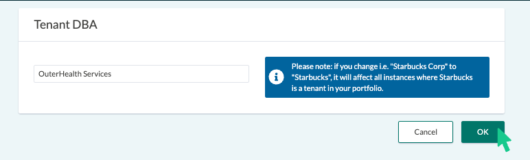 You'll then be taken back to the Tenant tab where you can confirm the name change is accurately represented.