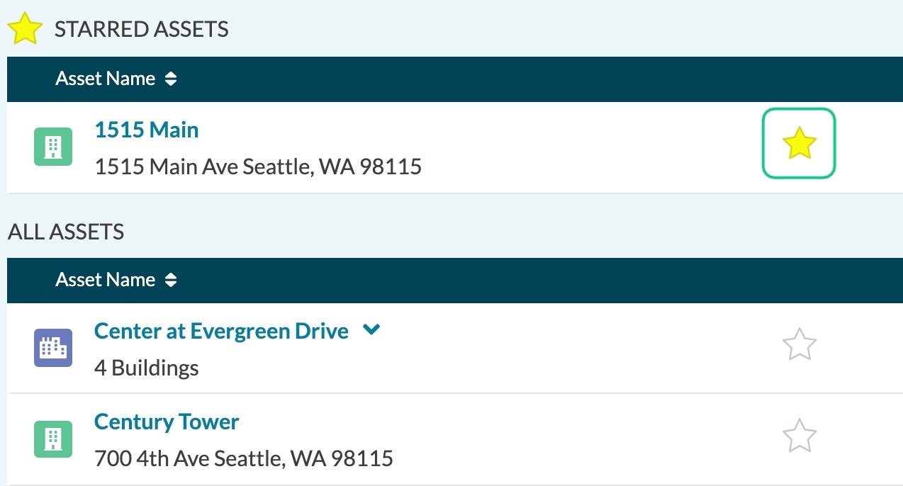 Click the STAR to "favorite" assets you interact with most frequently and move them to the top of your Asset List for easier access.